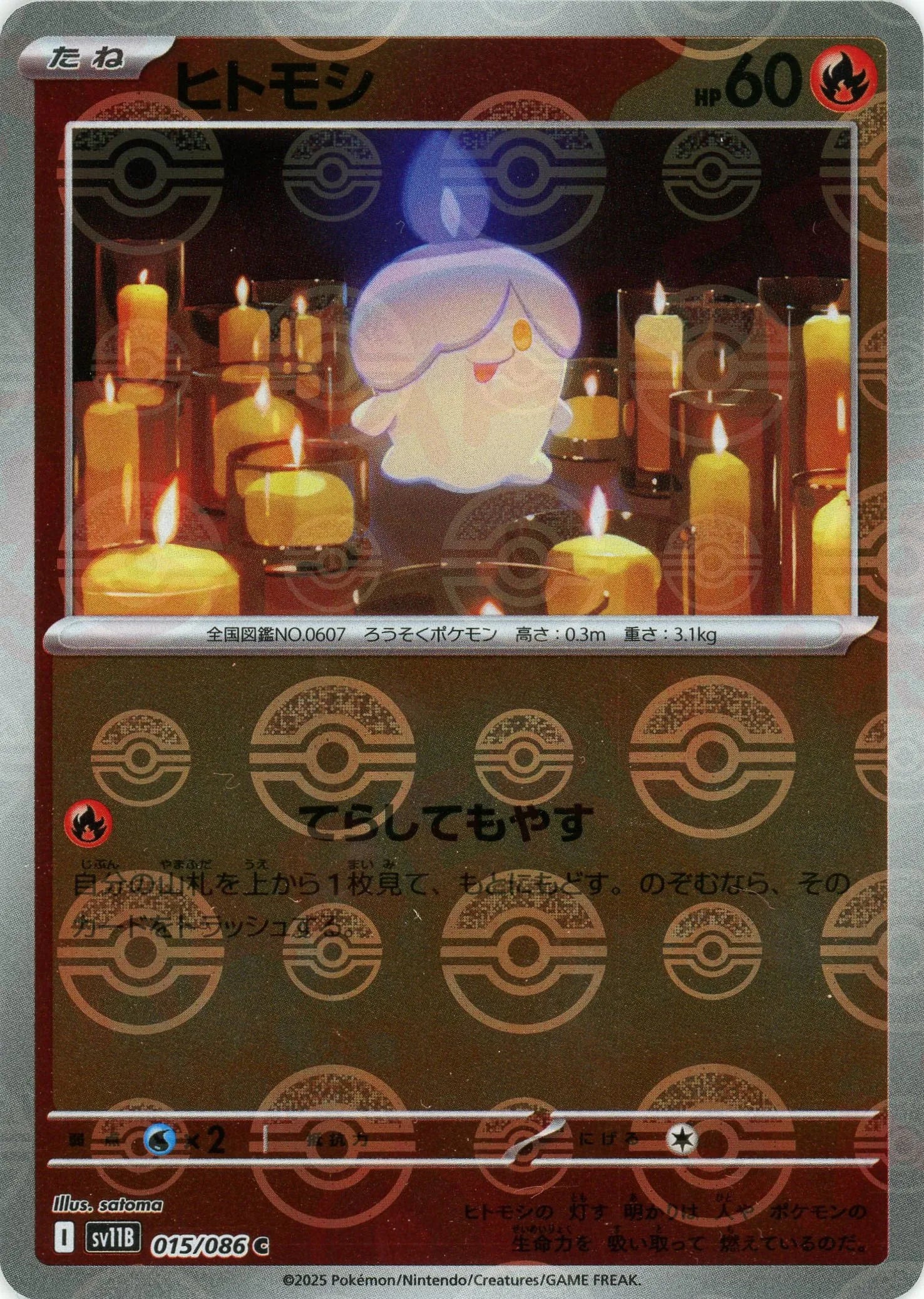 ヒトモシ:モンスターボールミラー(C){炎}〈015/086〉[SV11B-Mo]